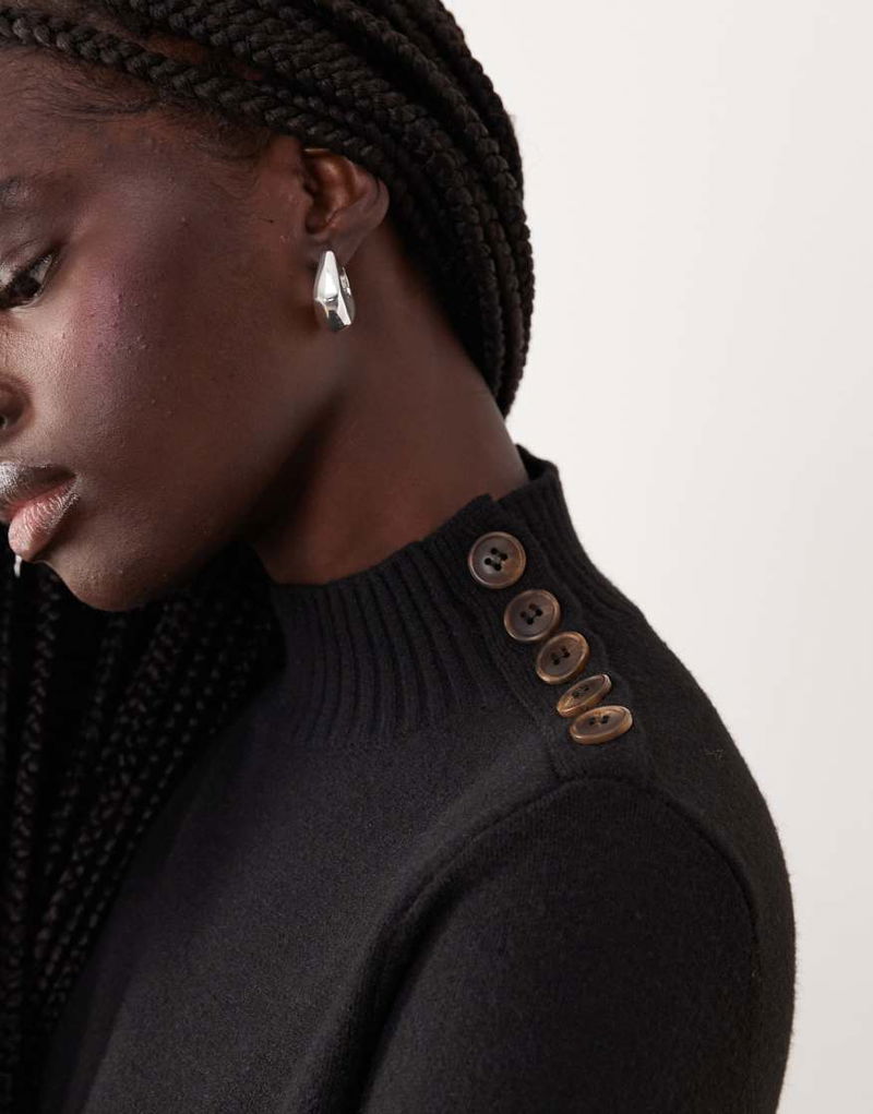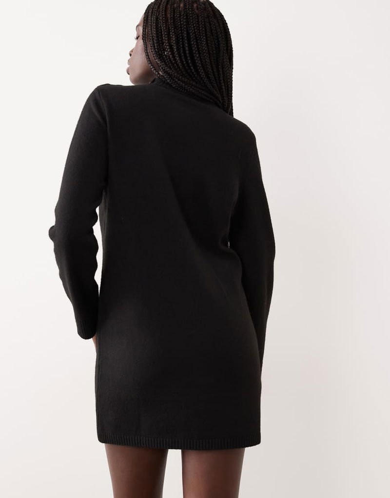 Button Detail Long Sleeve Knitted Mini Dress In Black