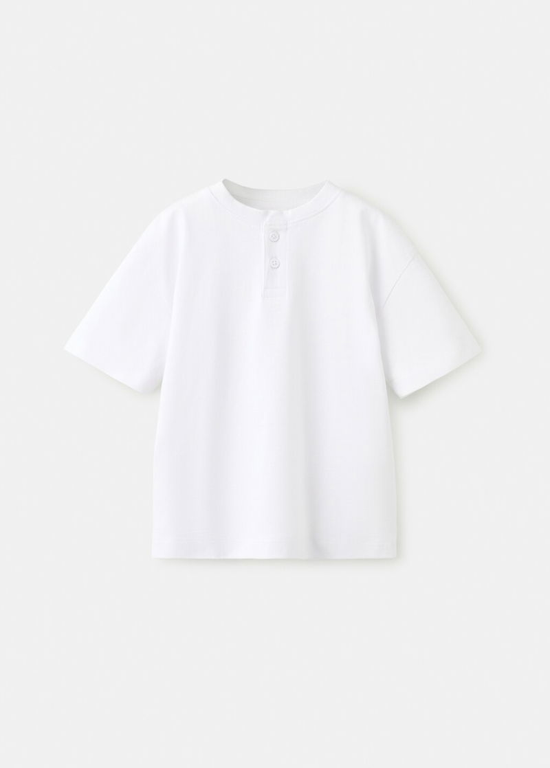 100% cotton fabric. Straight design. Rounded neck with button fastening. Short sleeves.