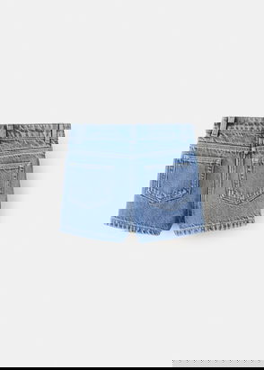 Short design, Flared design, Two side patch pockets, Sustainable cotton, Button fastening on the front section, Denim style cotton fabric.