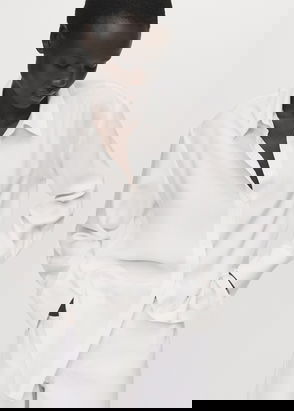 Flowy fabric, Classic collar, Long buttoned sleeve, Button fastening on the front section, Patch pocket on the front.