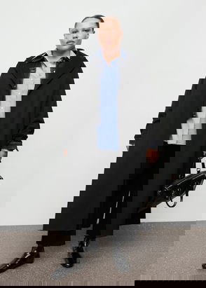 Committed Collection, Wool mix fabric, Straight design, Medium design, Lapel-collar V-neck collar, Lapel with notch, Long sleeve, Two pockets with flaps on the front, Inner lining, Button fastening on the front section.