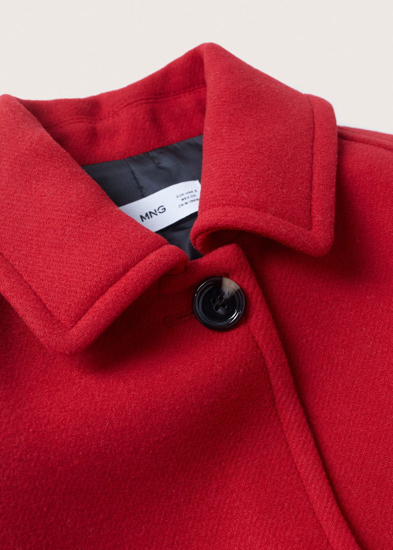 Fabric with wool, Straight design, Midi fit, Lapel-collar, Long sleeve, Two side pockets, Button fastening on the front section, Inner lining.