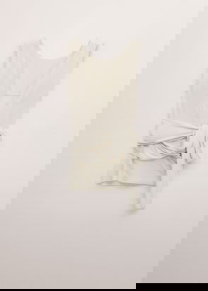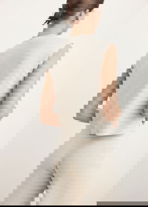 Cable knit, Short design, Rounded neck, Sleeveless, Cable knit finish.