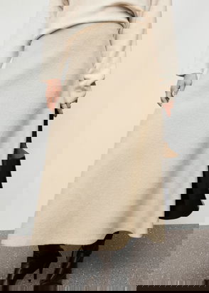 Tailored design, Cable knit fabric, Fabric with linen, Elastic waist, Side length 35.43 in Skirt length 32.68 in.