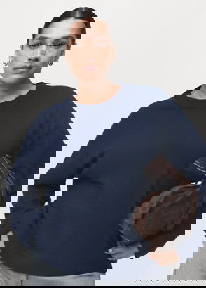 Cable knit, Short design, Rounded neck, Dropped shoulder seams, Long sleeve, Cable knit finish, Back length 18.9 in.