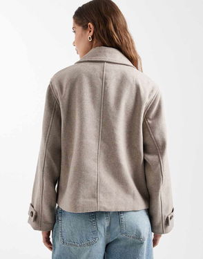 Cape style. Shirt Collar. Three quarter sleeve. Front closure with buttons.