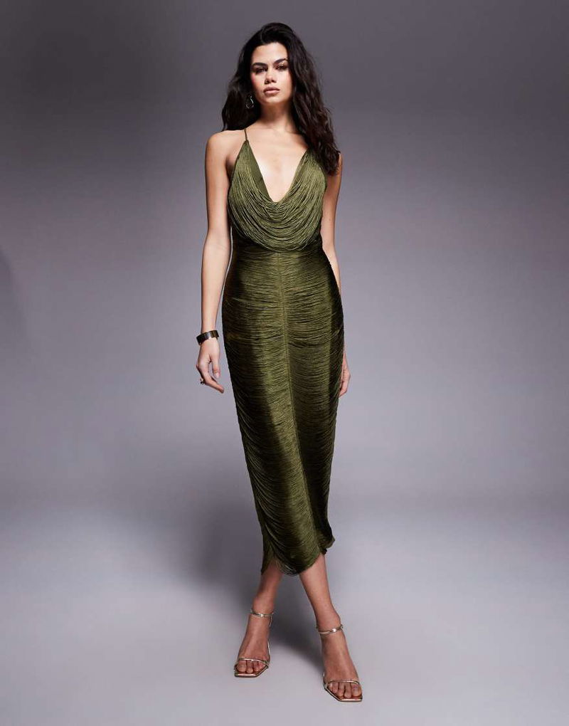 Capsule Scoop Neck Maxi Dress With Tassels In Khaki.