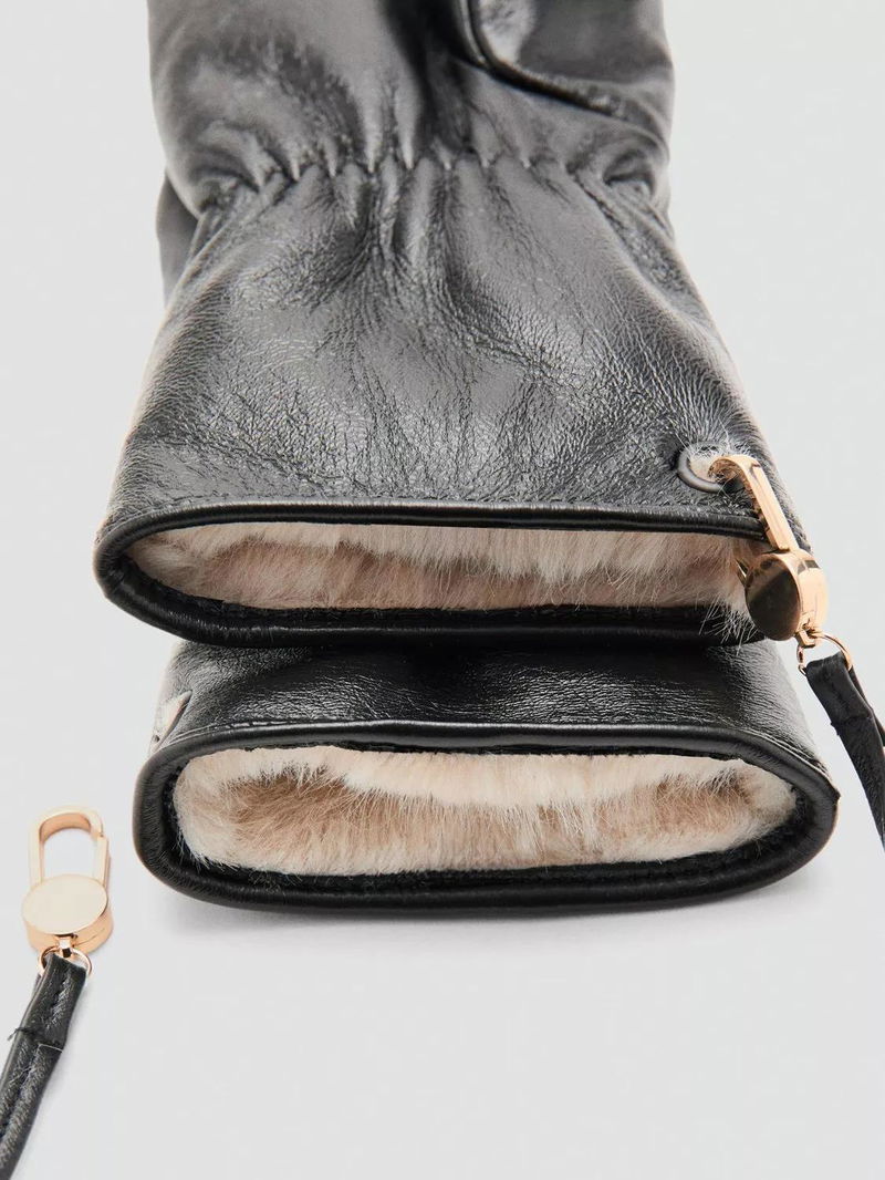 Cara Leather Mittens, Black