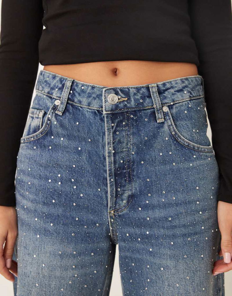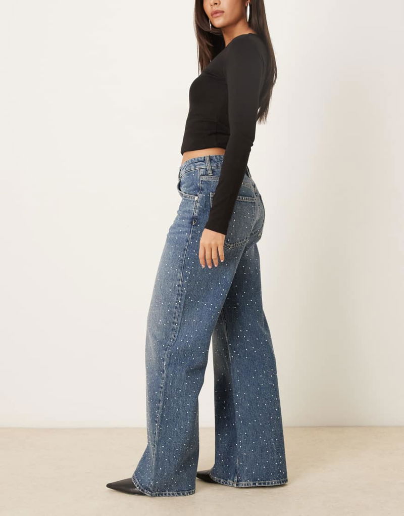Caribe 100% Cotton Embellished Wide Leg Jean.