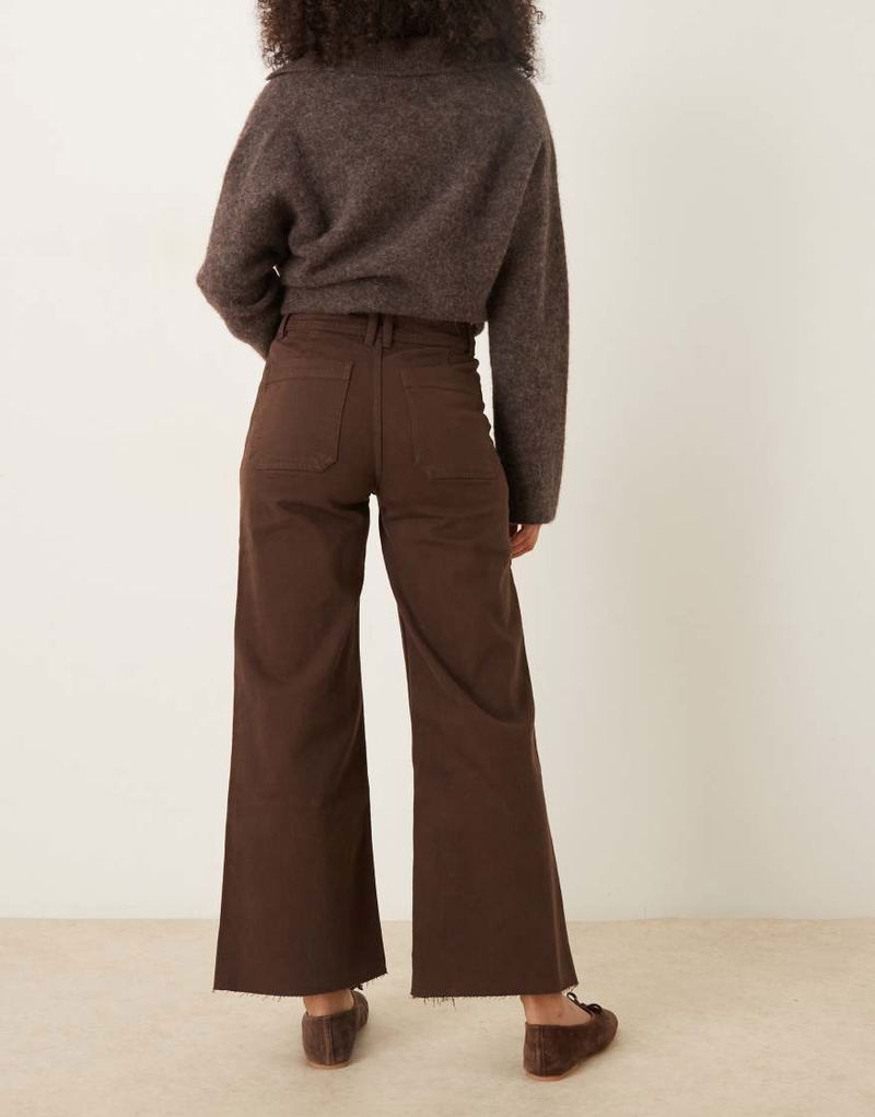 Catherin Cotton Mix Frayed Hem Straight Jean In Brown