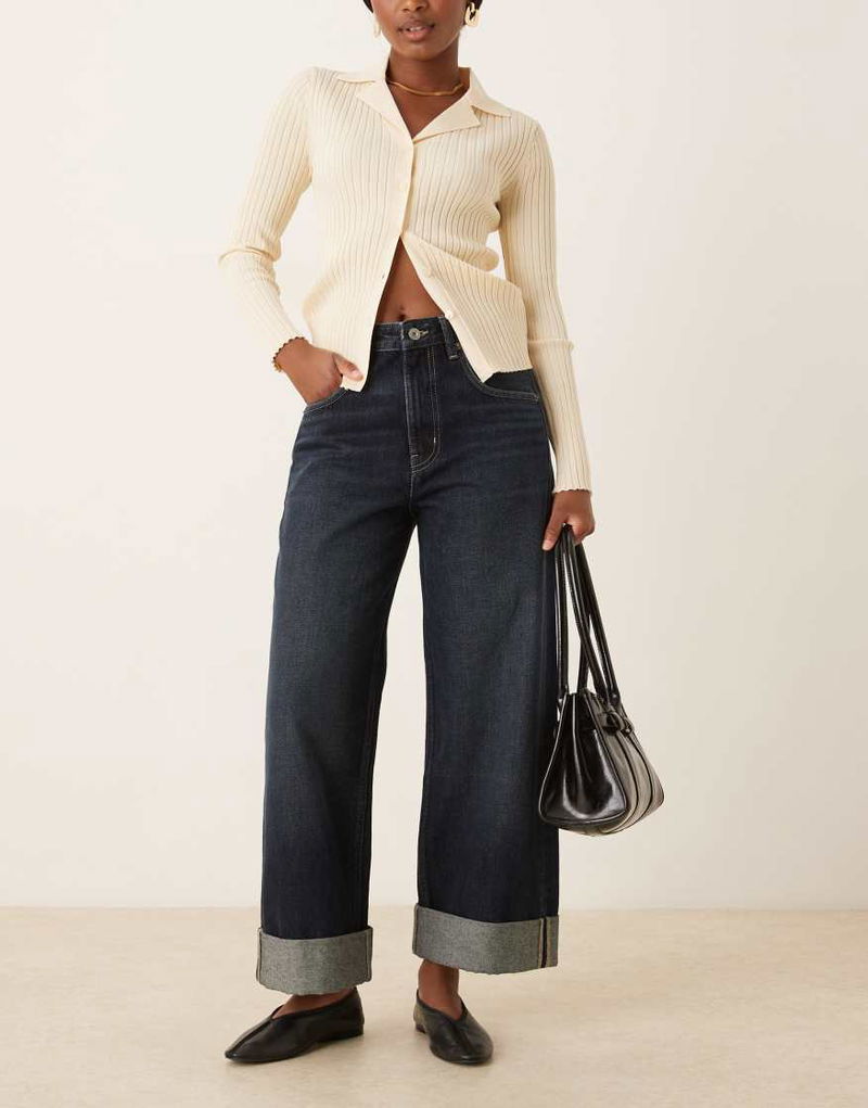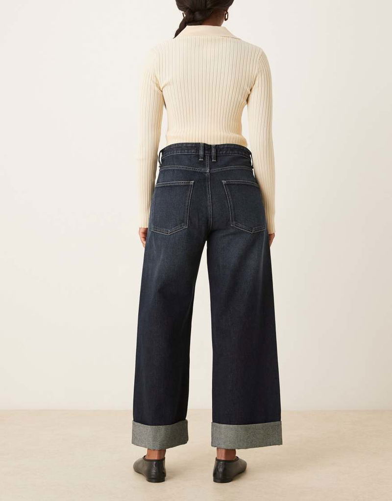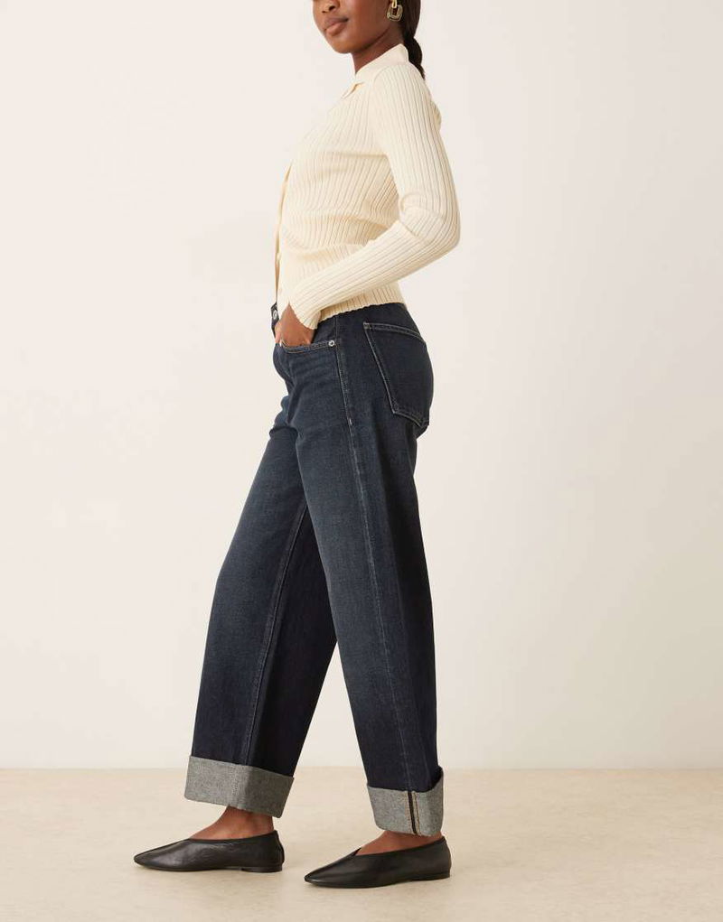Celia 100% Cotton Turn Up Straight Jean In Indigo