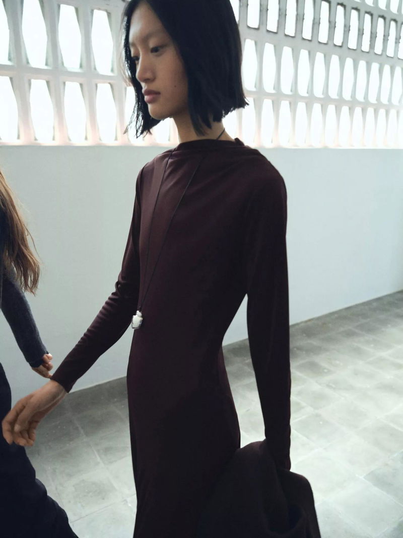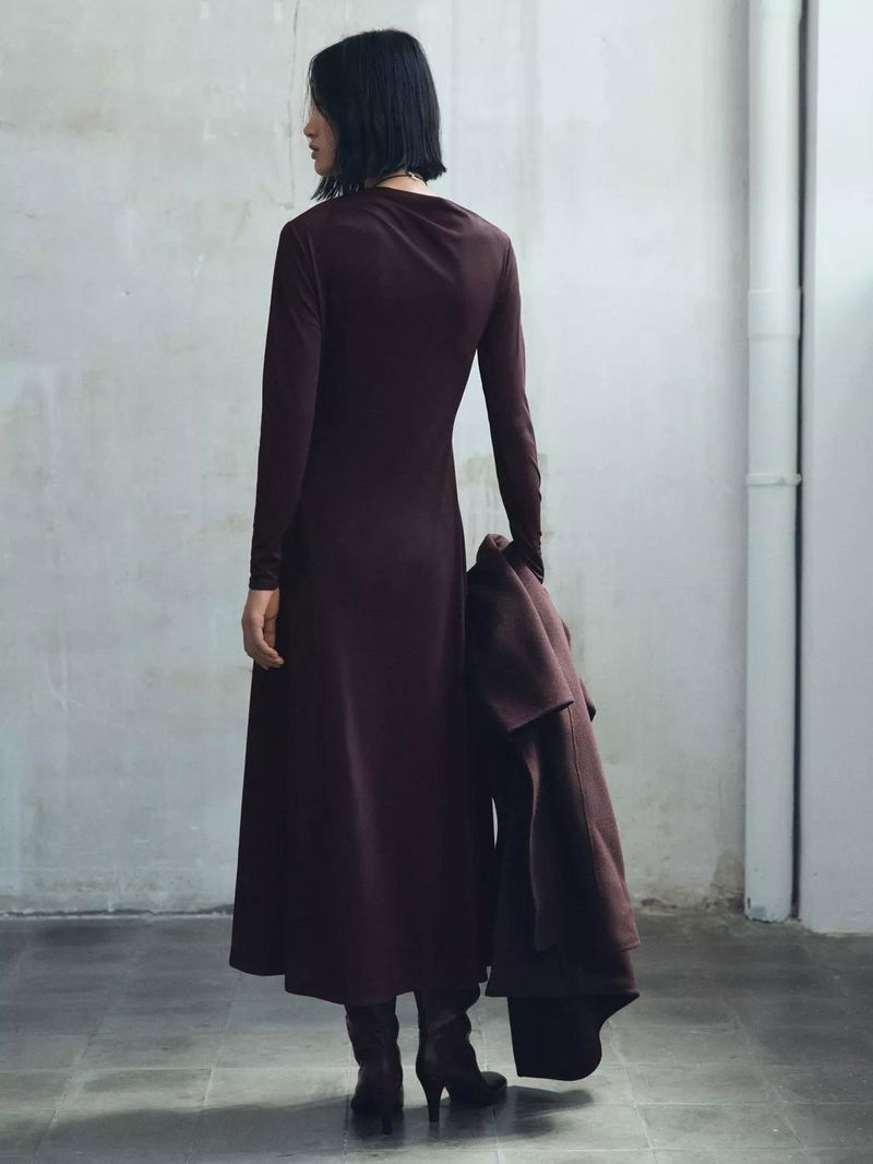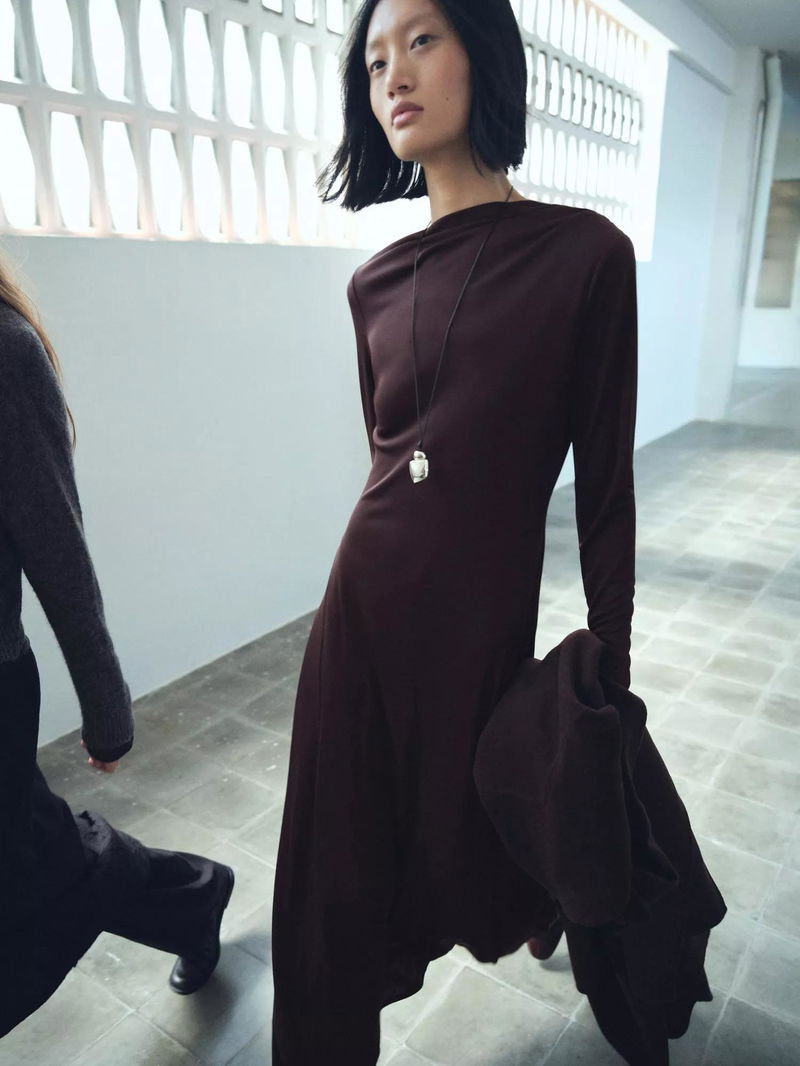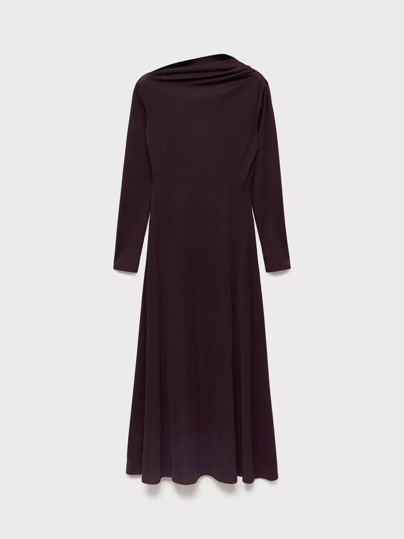 Proof that the A-line shape is a classic for a reason. This long sleeve midi dress by Mango has an asymmetric neck and a plain colour design to go with everything.