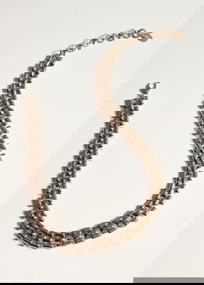 Interlinked chains, Rhinestone detail, Hook fastenings.