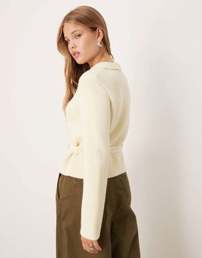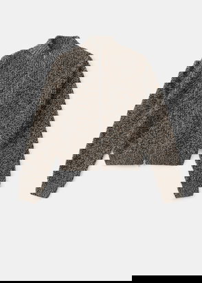 Tweed fabric, Checked print, Short design, Rounded neck, Long sleeve, Cable knit finish, Jewel effect buttons, Button fastening on the front section, Back length 18.5 in.