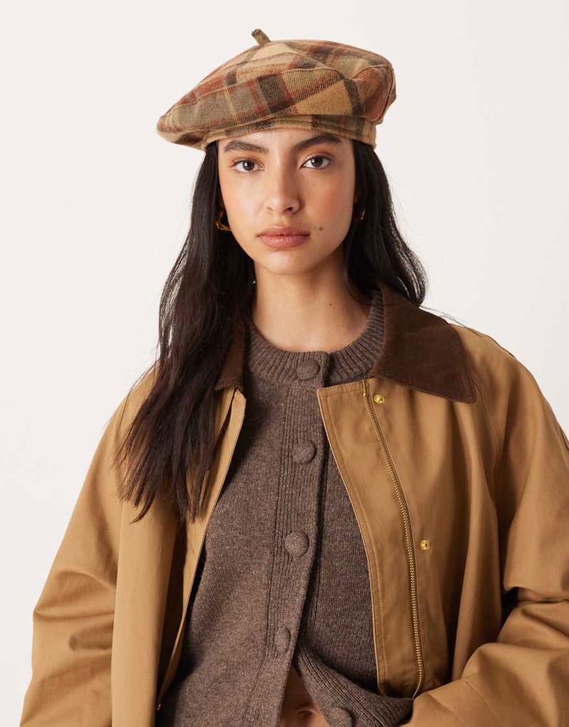 Checked Beret In Brown