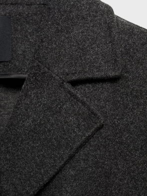 Wool mix fabric, Midi design, Check-pattern, Lapel-collar V-neck collar, Two side pockets, Long sleeve, Inner lining.