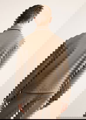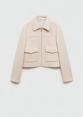 Fabric with wool, Checked print, Wide design, Shirt-style, Lapel-collar, Long sleeve with buttoned cuffs, Dropped shoulder seams, Two pockets with flaps on the front, Button fastening on the front section.