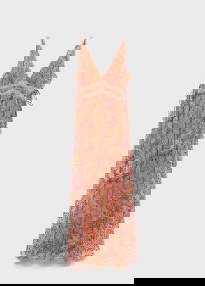 Chiffon Maxi Dress In Rust Paisley Print