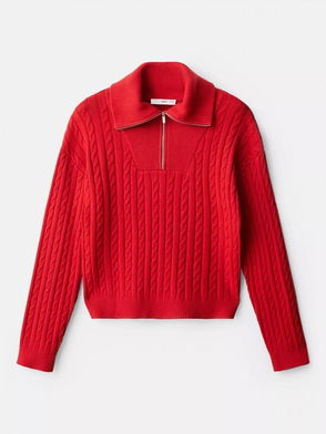 Straight design, Thick knitted fabric, High collar, Sleeveless, Zip fastening on the front section, Cable knit finish, Back length 21.26 in.