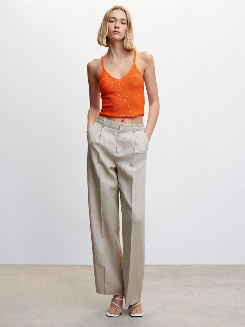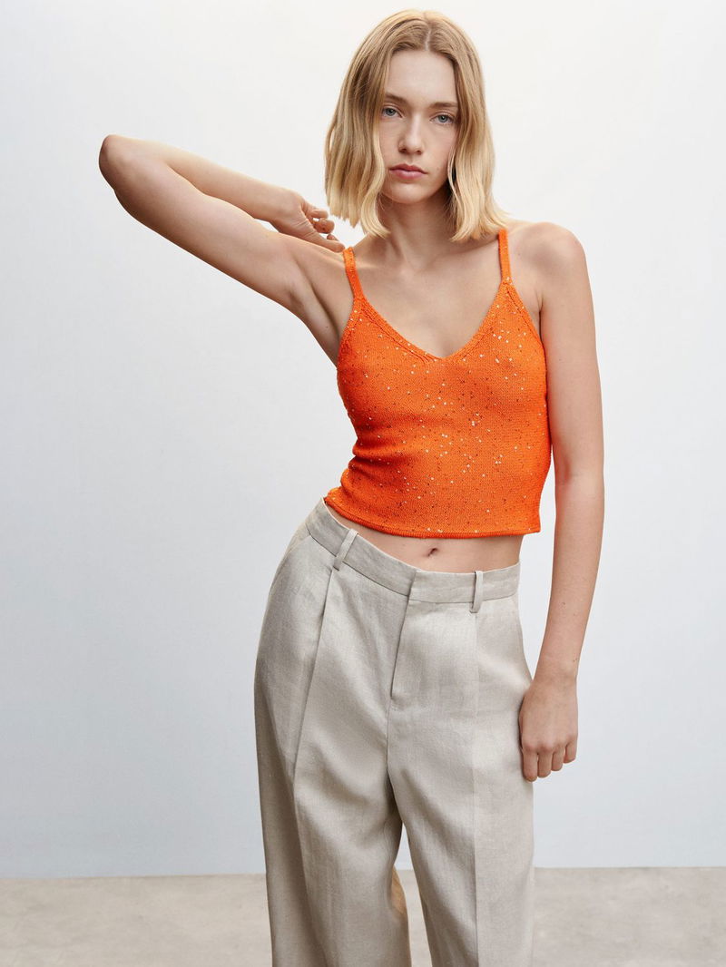 A faithful staple, this cami by Mango will give your wardrobe the refresh it needs. With a flattering v-neckline and spaghetti straps, it is made from a light yet durable fabric and pairs well with a summery skirt for when the weather warms.