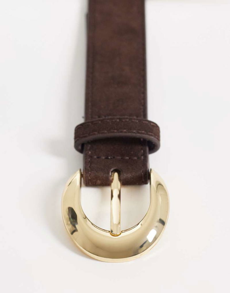 Classic 100% Sued Belt With Gold Hardware In Brown