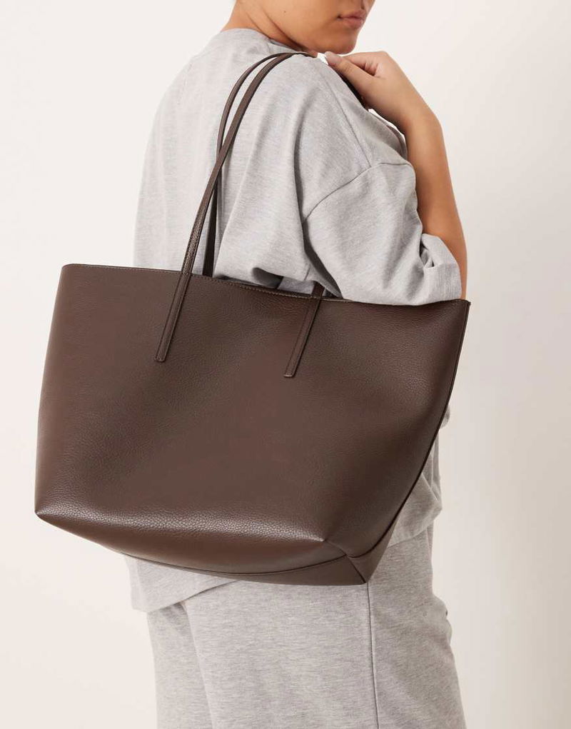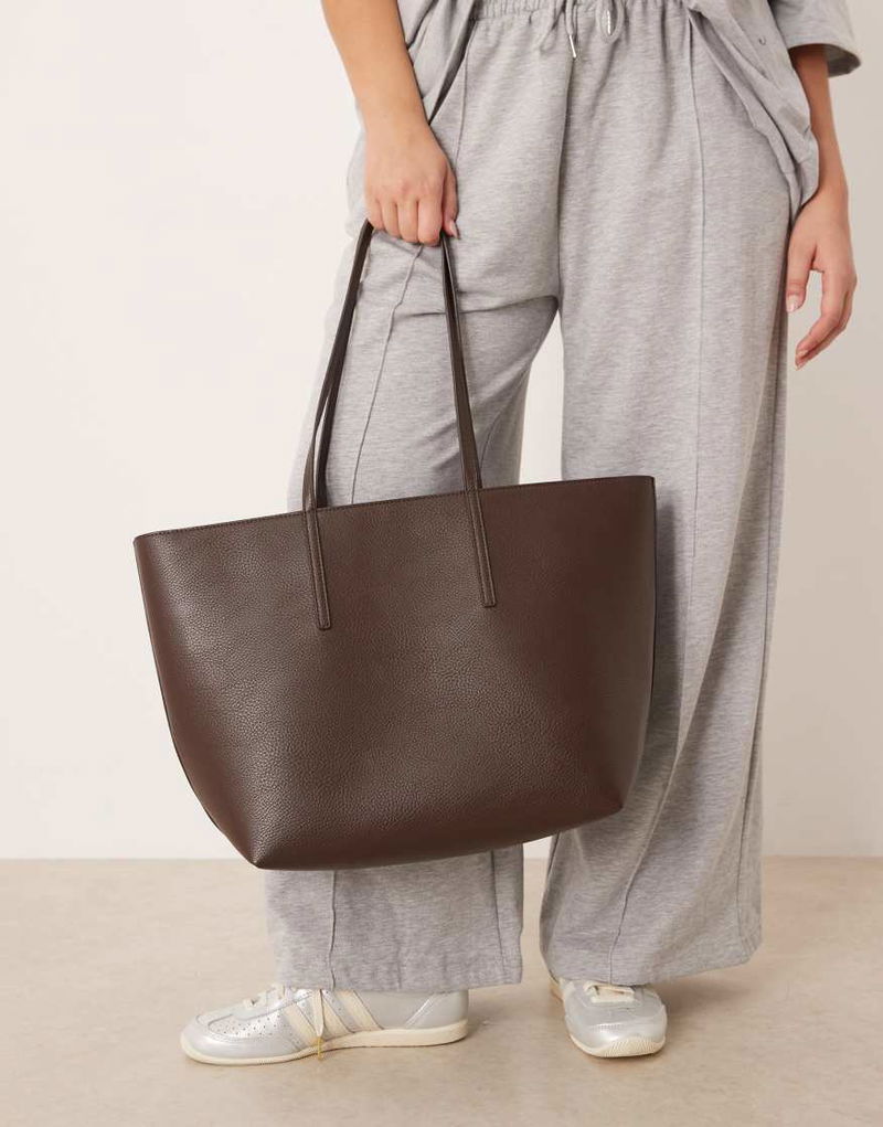 Classic faux leather tote bag in brown.