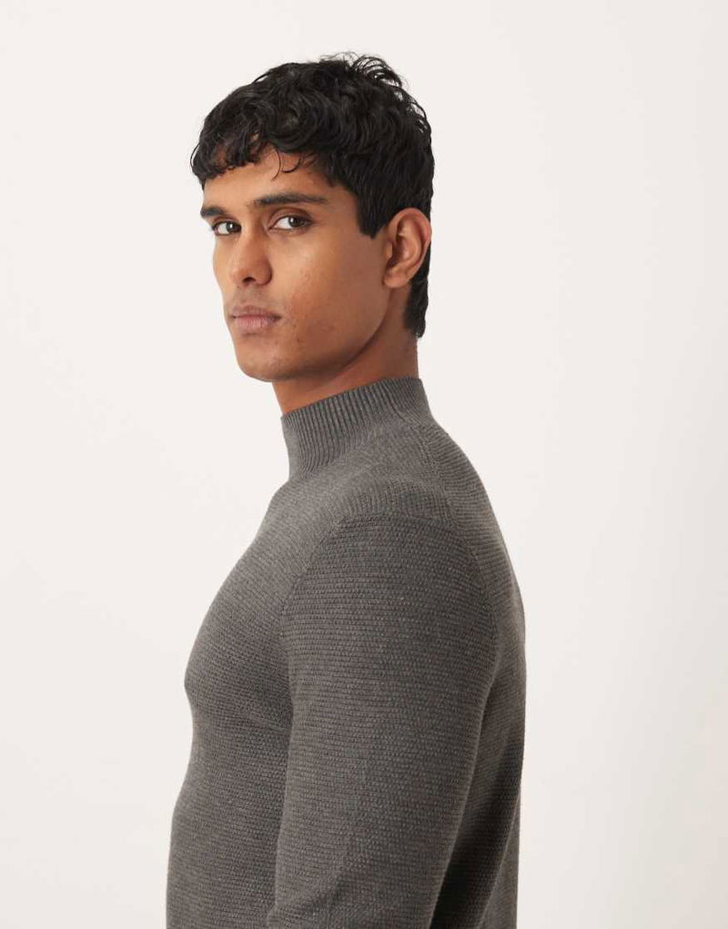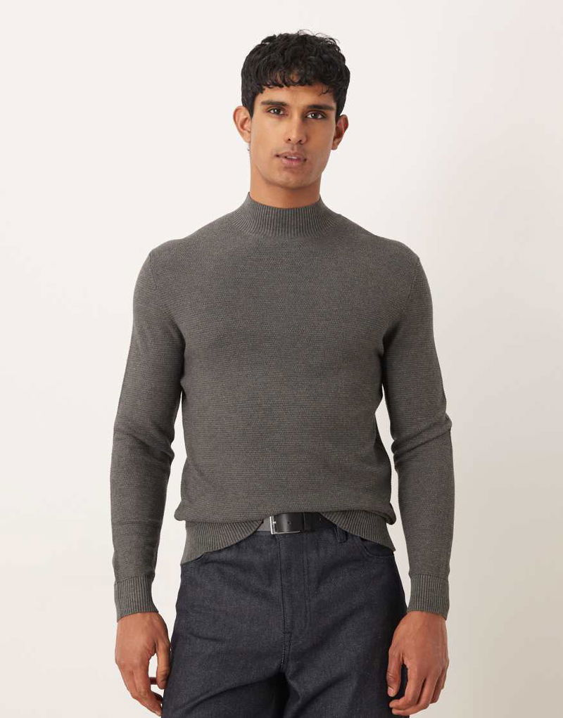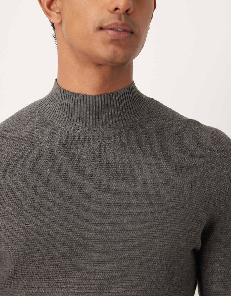 Classic Fine Knit Mock Neck Jumper In Charcoal
