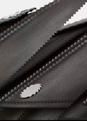Faux leather, Short design, Lapel-collar, Loops on the shoulders, Lapel with notch, Long sleeves with zipped cuff, Two zipped pockets, Asymmetric zip fastening, Inner lining, Back length 24.06 in.