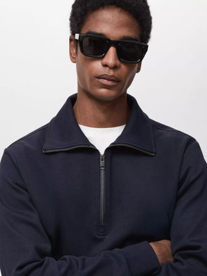 Light fabric, Fine knit fabric, Combined design, Hood, Turtleneck, Long sleeve, Two zip pockets on the front, Zip fastening.