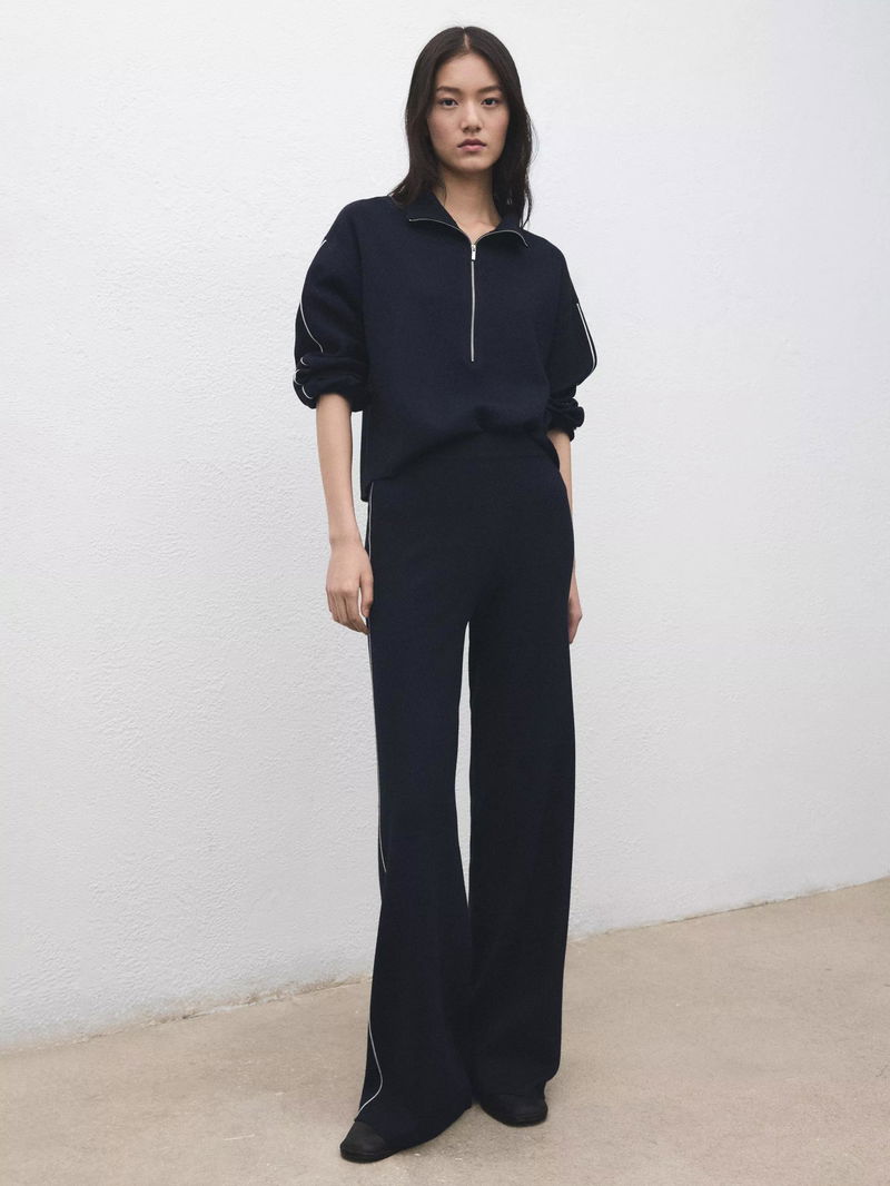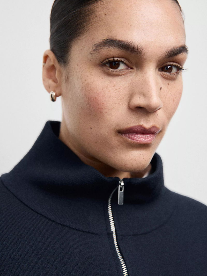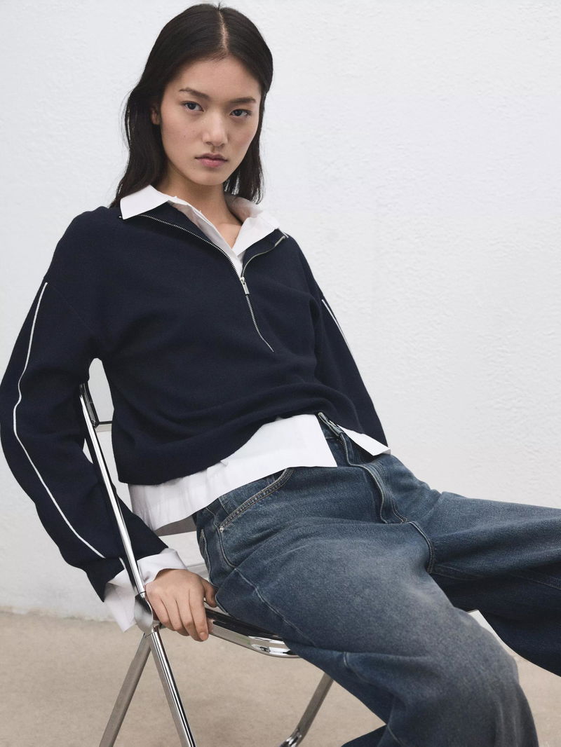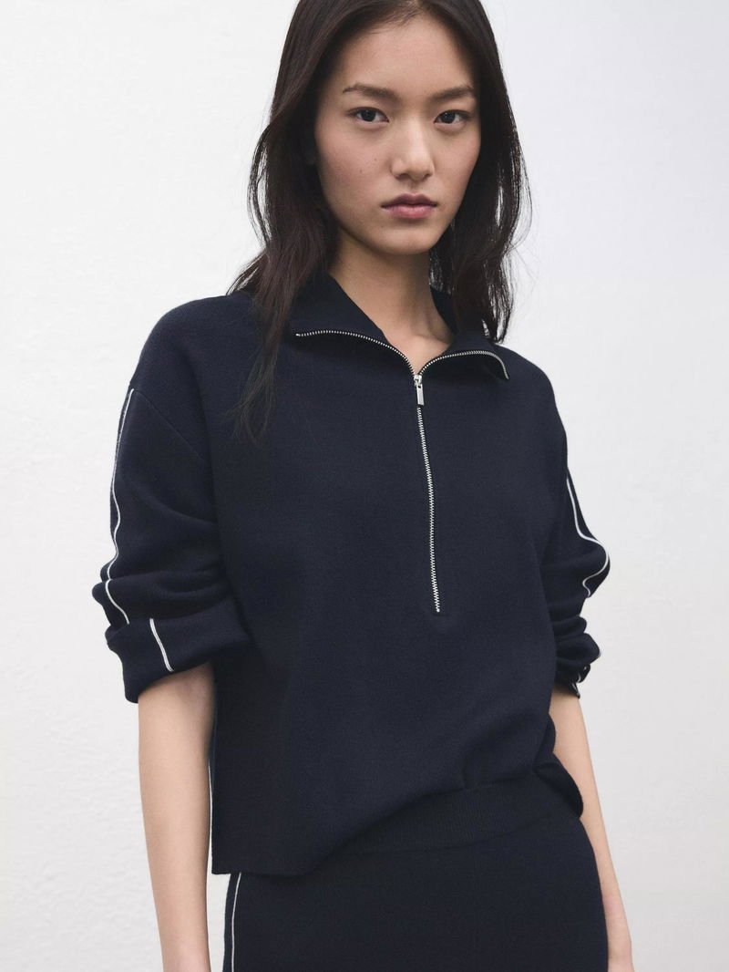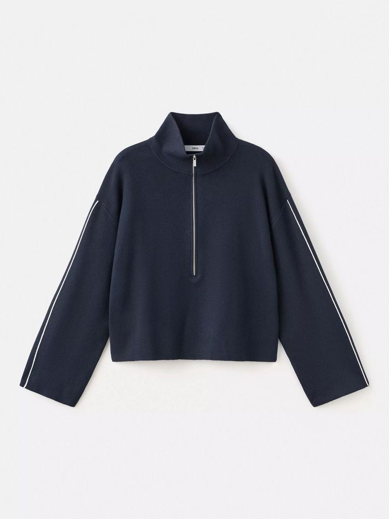 A zip neck jumper by Mango. Soft, medium-weight knit keeps you comfortable, while contrast piped details on the sleeves add a sporty take.