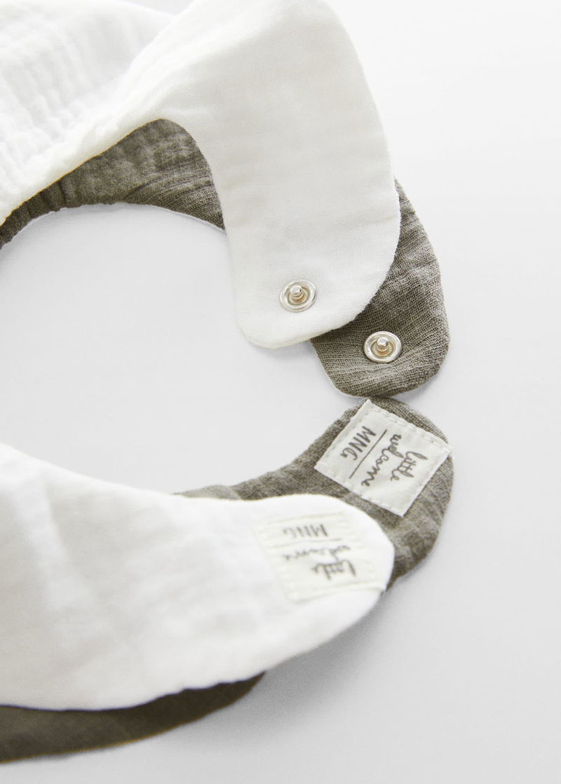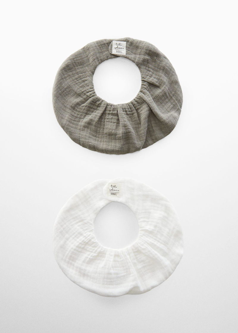 White and grey baby bib.