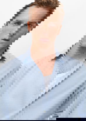 Straight silhouette. 100% cotton fabric. Fine-knit fabric with openwork details. Shirt Collar. Front closure with buttons. Short sleeve. Ribbed collar, sleeves and hem.