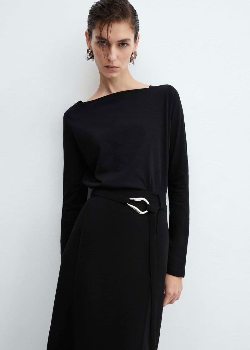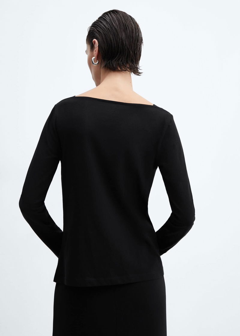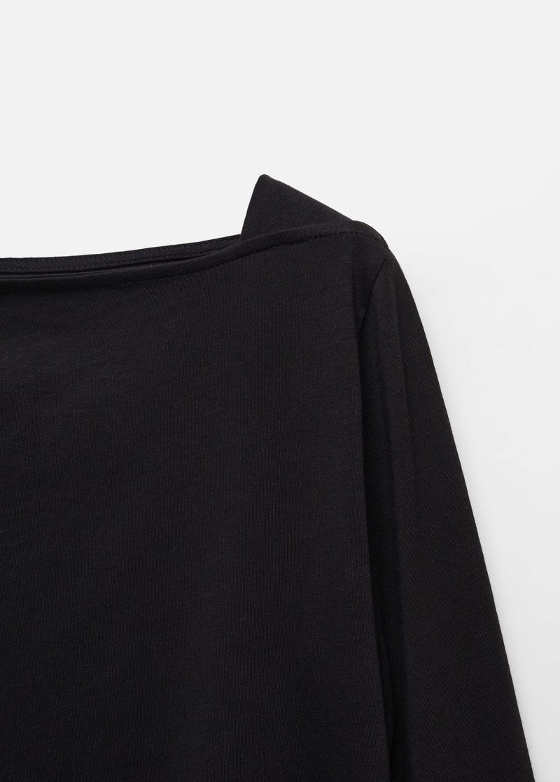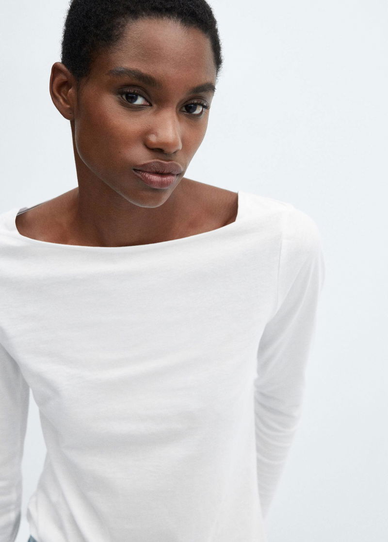 Straight design, off shoulder, long sleeve.