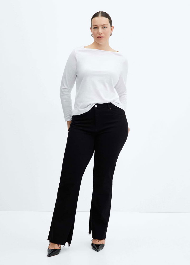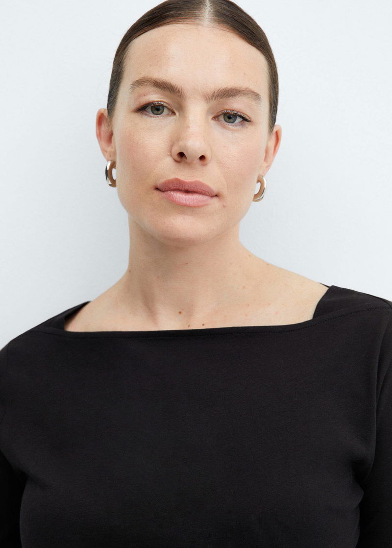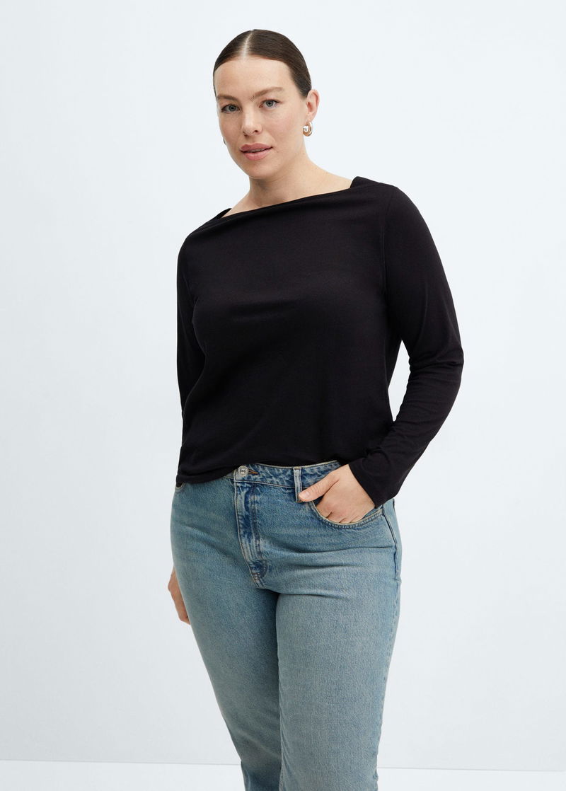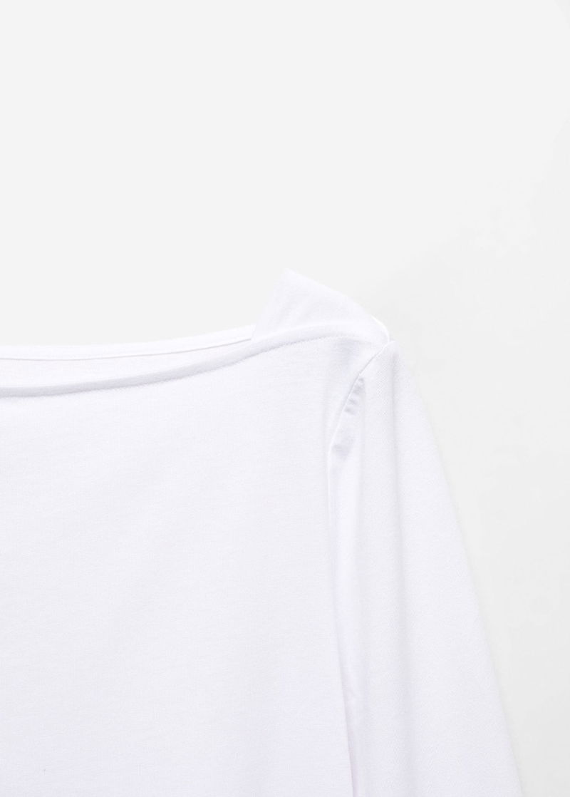 Straight design, off shoulder, long sleeve.