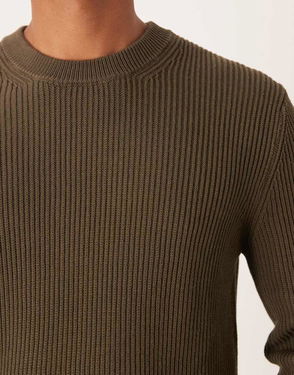 Cotton Chunky Knit Crew Neck Jumper In Natural