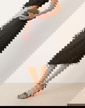 Long design. A-line design. Low waist. Drawstring waist. Slip-on. Total look.