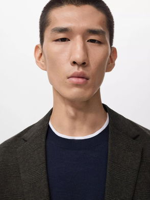 Slim fit, Sustainable cotton blend fabric, Lapel with notch, Long buttoned sleeve, Button up, Double back slit, Without inner lining, Inner pocket.