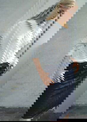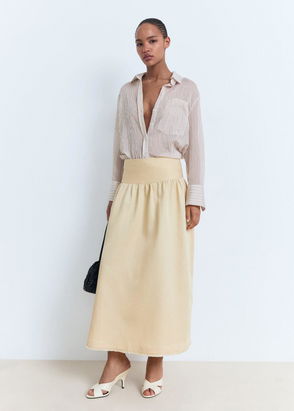 Cotton fabric. Straight design. Midi design. Low waist. Pleat detail on the front. Side zip closure. Inner lining.