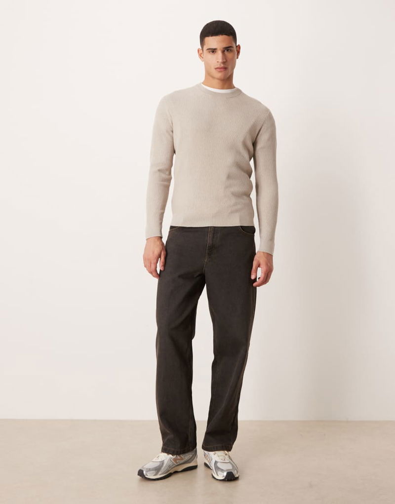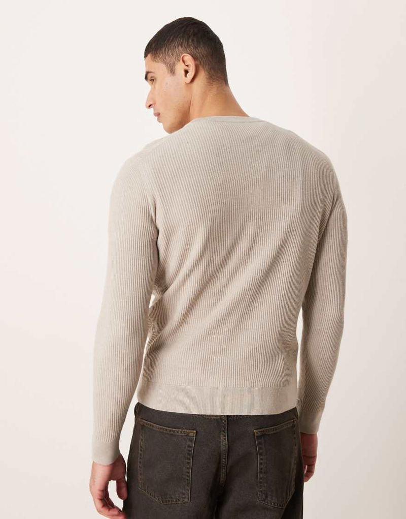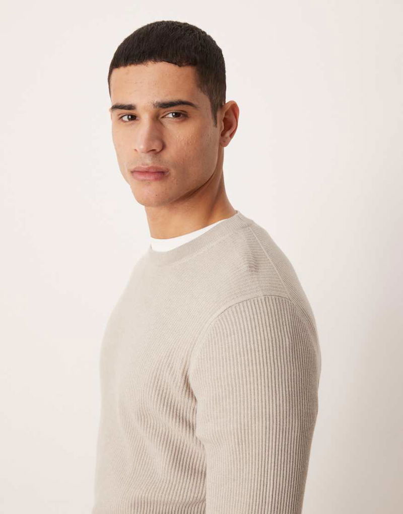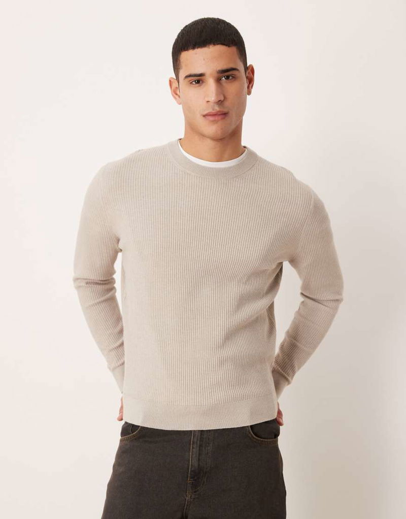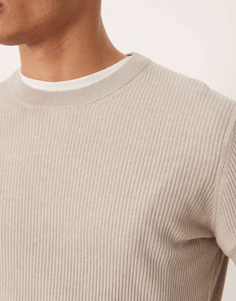 Cotton Mix Crew Neck Jumper In Beige