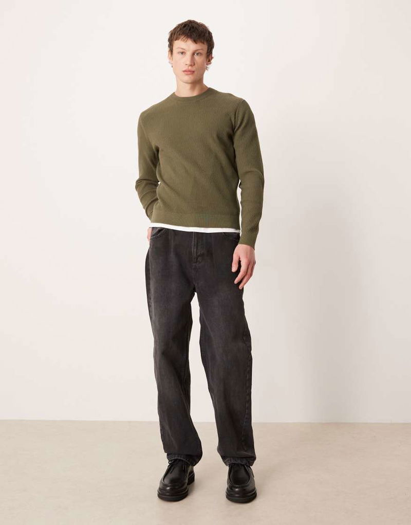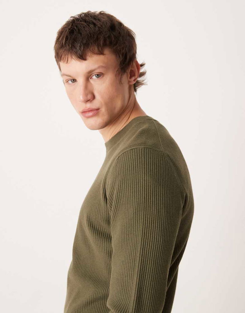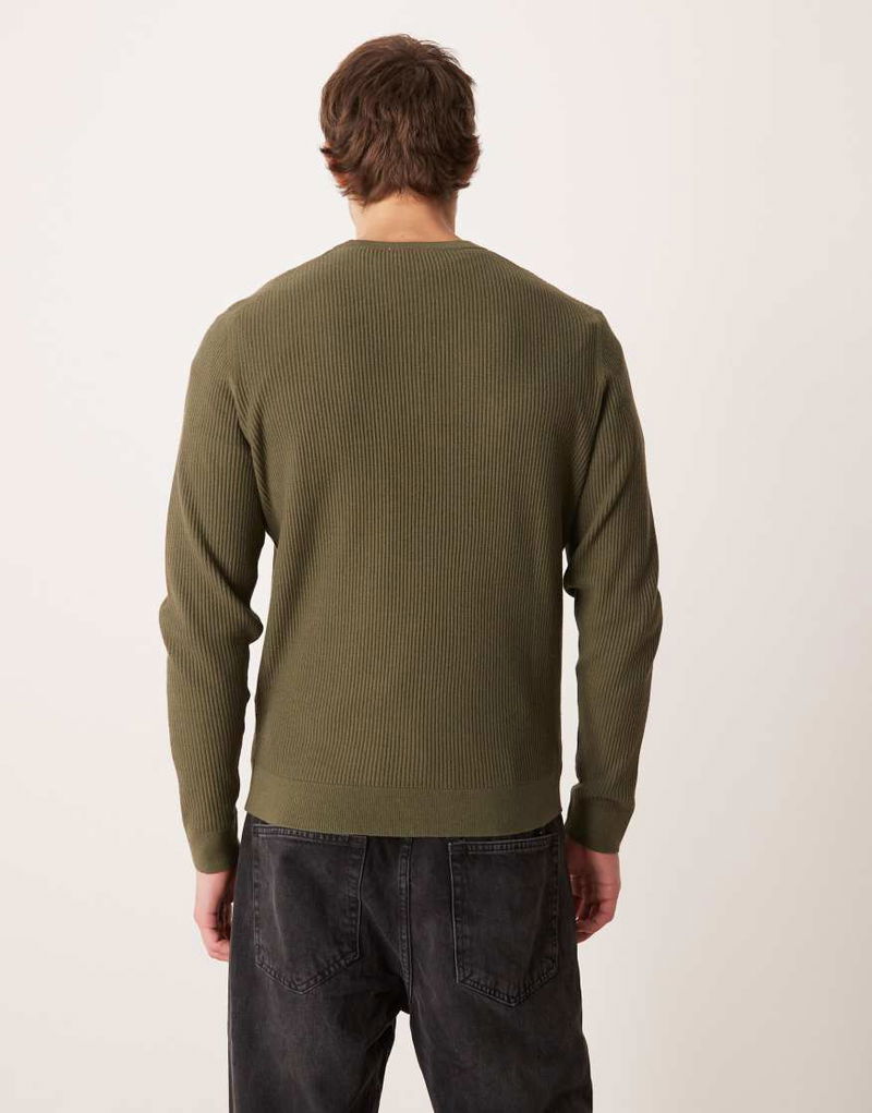 Cotton Mix Crew Neck Jumper In Khaki