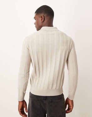 Cotton Mix Knitted Long Sleeve Polo In Grey