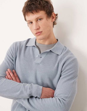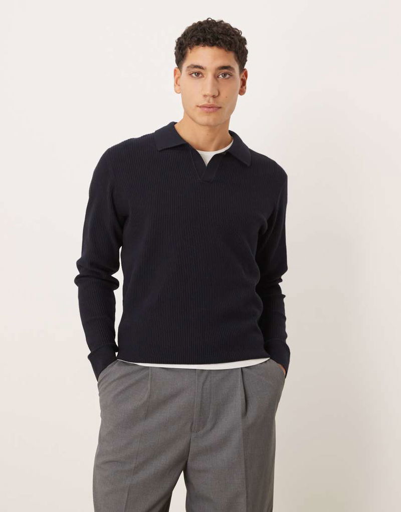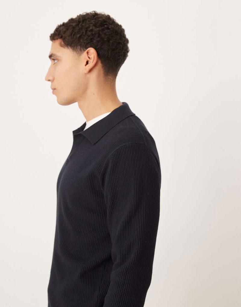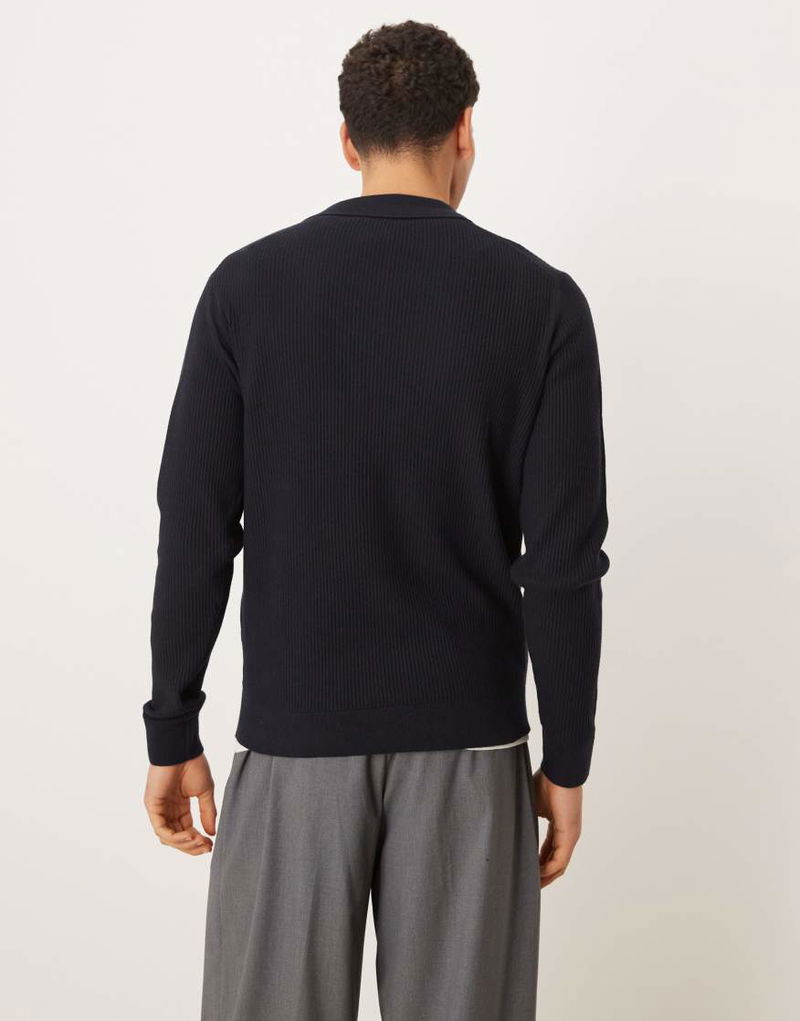 Cotton Mix Revere Collar Knitted Polo Top In Navy