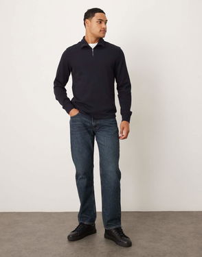 Cotton Mix Ribbed Quarter Zip In Ecru