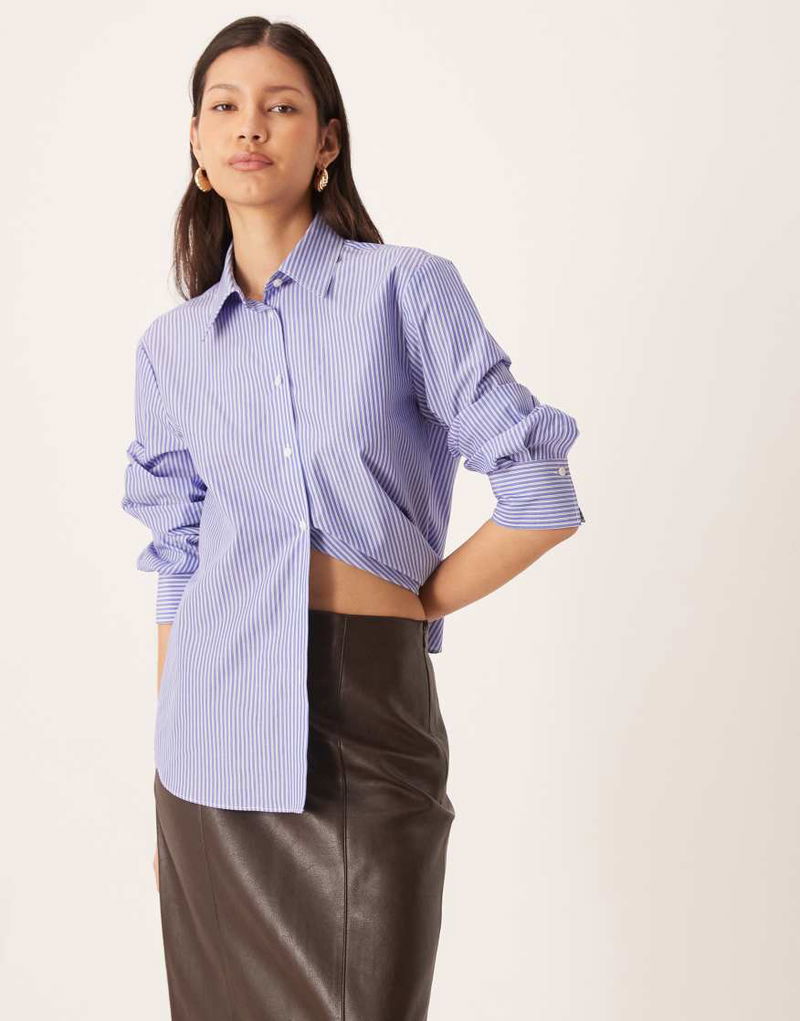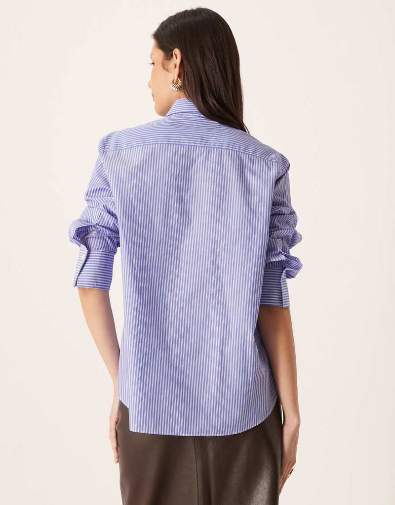 Cotton Mix Shirt In Blue And White Stripe