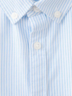 Organic cotton fabric, Striped design, Rounded neck, Long sleeve, Press stud fastening on the back, Back length 12.6 in