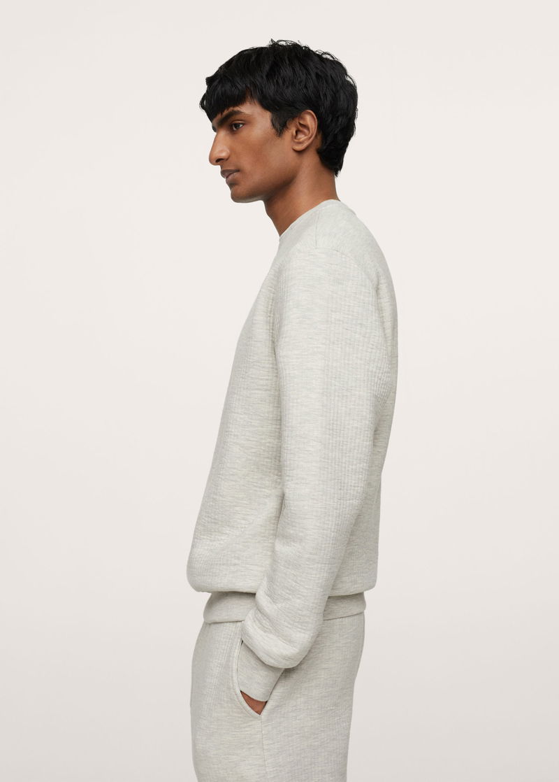 Sustainable cotton blend fabric, Structured fabric, Rounded neck, Long sleeve, Elastic finish, Total look available.