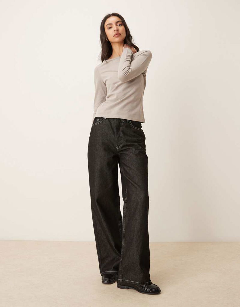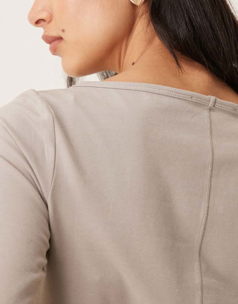 Cotton Rich Boat Neck Long Sleeve Top In Light Brown
