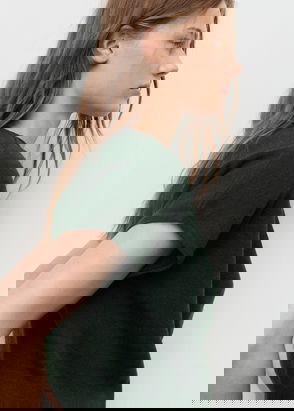 Thick knitted fabric, Straight design, Rounded neck, Short sleeve.