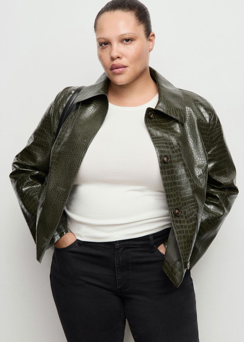 Croc-effect Faux Leather Jacket