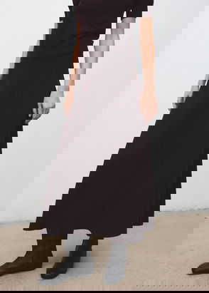 Thick knitted fabric. Crochet design. Long design. Straight design. Elastic waist. No fastening. Inner lining. Total look.
